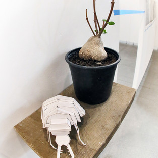Dirbdama prie betoninio elniaragio užstrigau ties mintimi, kad tai nei elnias, nei vabalas. Perėjau į tarpines būsenas, neatpažintus kokonus, vikšrus, grybus, išsiskirstančius į dar takesnes formas – kvapus, pigmentus ar nuodus.